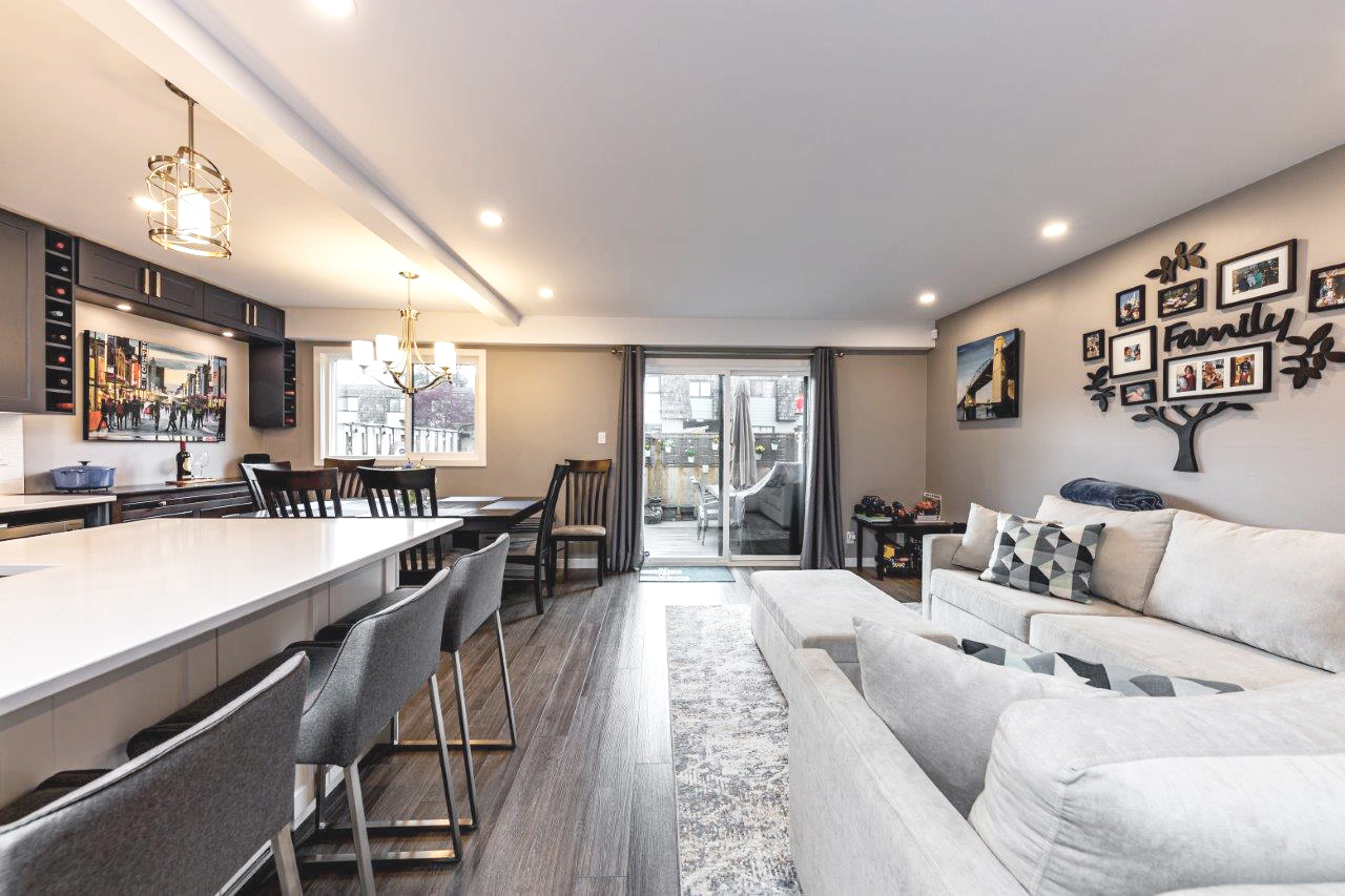 Totally updated townhouse in Lynnmour with 3 bedrooms and 2 designer full bathrooms. Open kitchen with huge island and 2 sinks. Outstanding quality renovations in every detail. Large fenced backyard comes with all furniture and gas BBQ. 2 parking stalls. Family perfect complex with playground and outdoor pool.