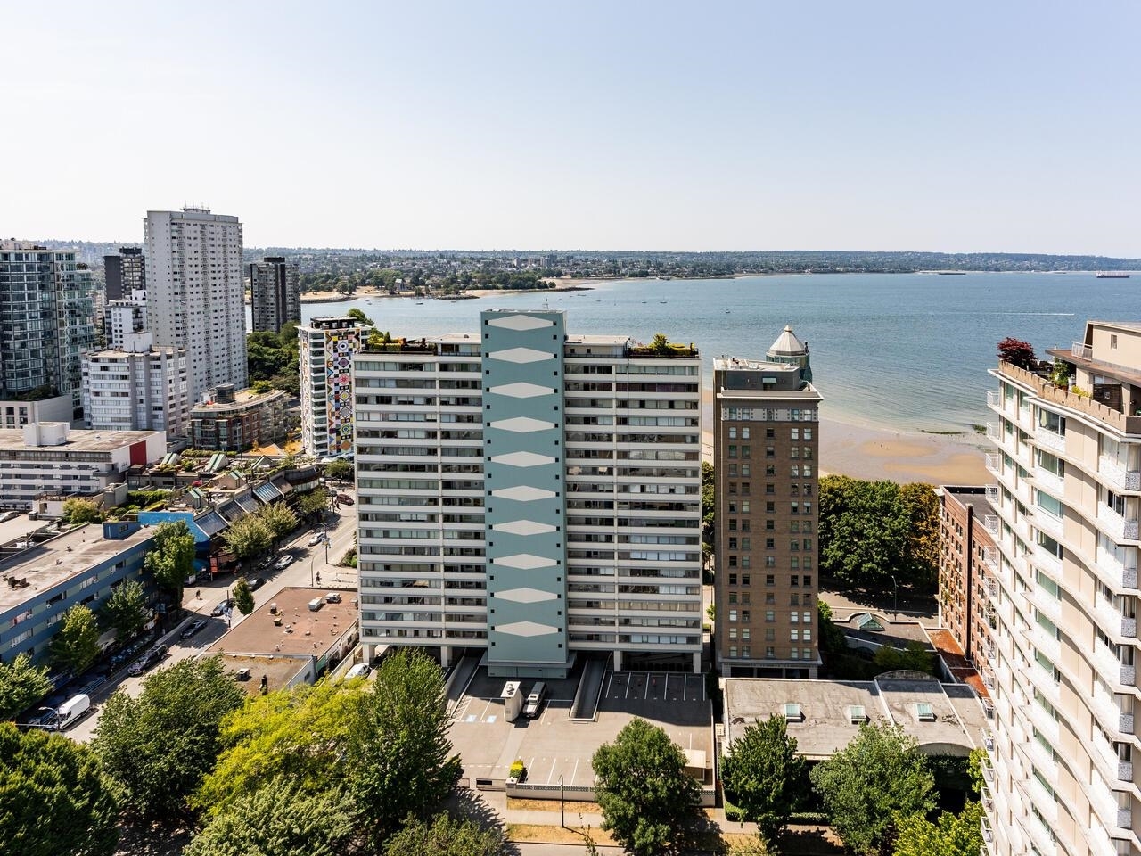 Sweeping views of the park, city and mountains in the iconic El Cid just west of Denman. High up, surrounded by windows, NE facing - the space is bright, quiet & cool. Completely updated & well taken care of, featuring an open kitchen, large bedroom & private balcony. The Eld Cid has fantastic amenities - an indoor pool, bike & exercise rooms & the amazing rooftop with 360 degree views. Strata fees include full time caretaker, property taxes, heat and hot water. Prepaid lease until Dec 31, 2073. Storage and parking included. Just a block from the beach, 2 from Stanley Park, and all the restaurants, cafes and anything else you may want, right at your doorstep.