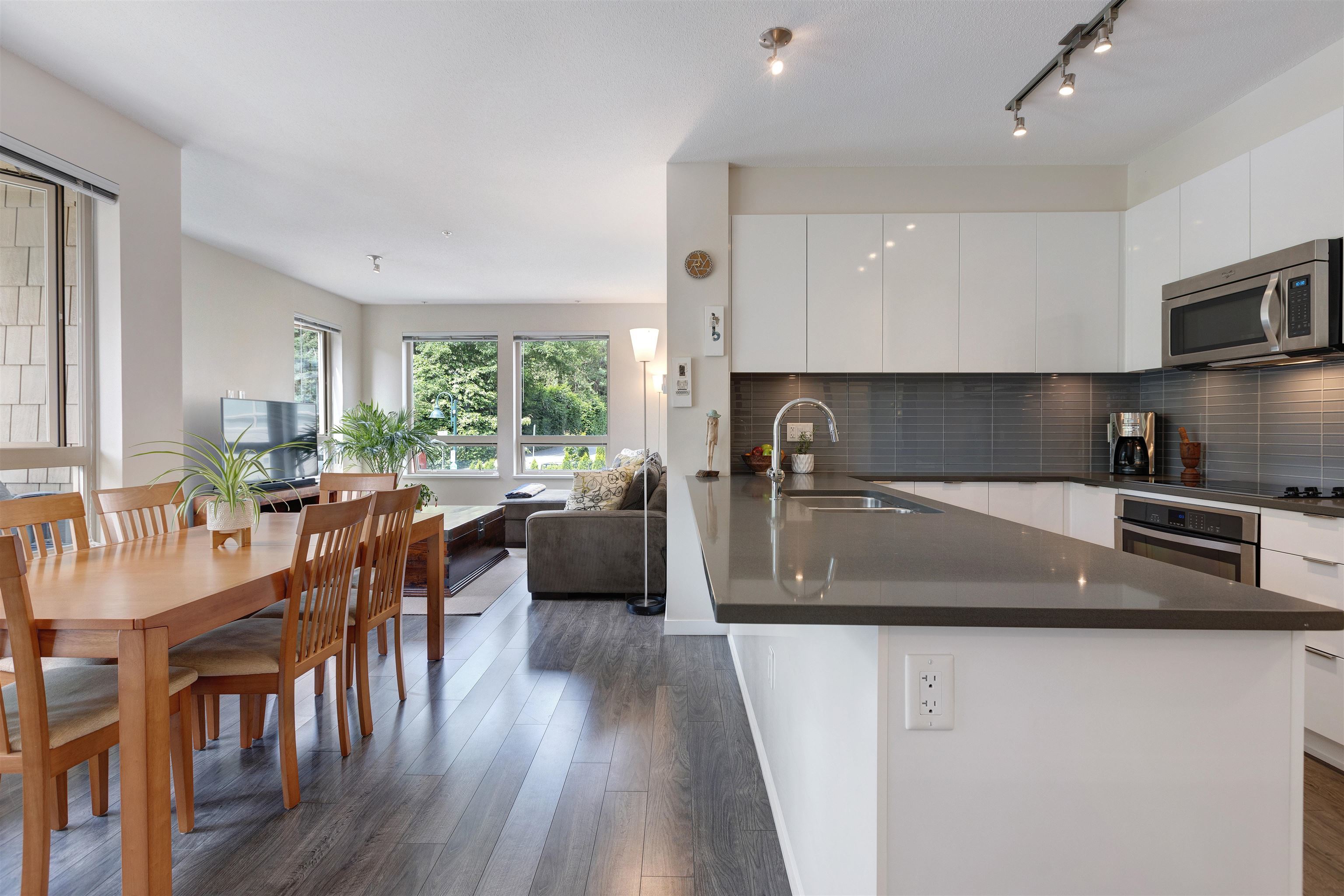 Calling all outdoor enthusiasts in need of storage! This immaculately maintained 3 bed/2 bath corner unit is SW facing on the quiet side of the building in the heart of Lynn Valley. Enjoy an open and spacious floor plan, 9’ ceilings, wide plank flooring and an amazing kitchen w/quarts counters, stainless appliances and loads of cabinets. Spacious living area can accommodate large furniture. Master bed has walk-in closet and ensuite w/double sinks, separate bath and shower, plus 2 more beds and a full bath. Lots of gear? No problem. Rest easy with your own secured storage space for multiple mountain bikes, kayaks, camping gear and a couple of SUP’s. Building still under warranty. Walkable and amazing amenities. Easy access to Lynn Canyon, Headwaters, and Mnt Fromme. Photos/vid posting today