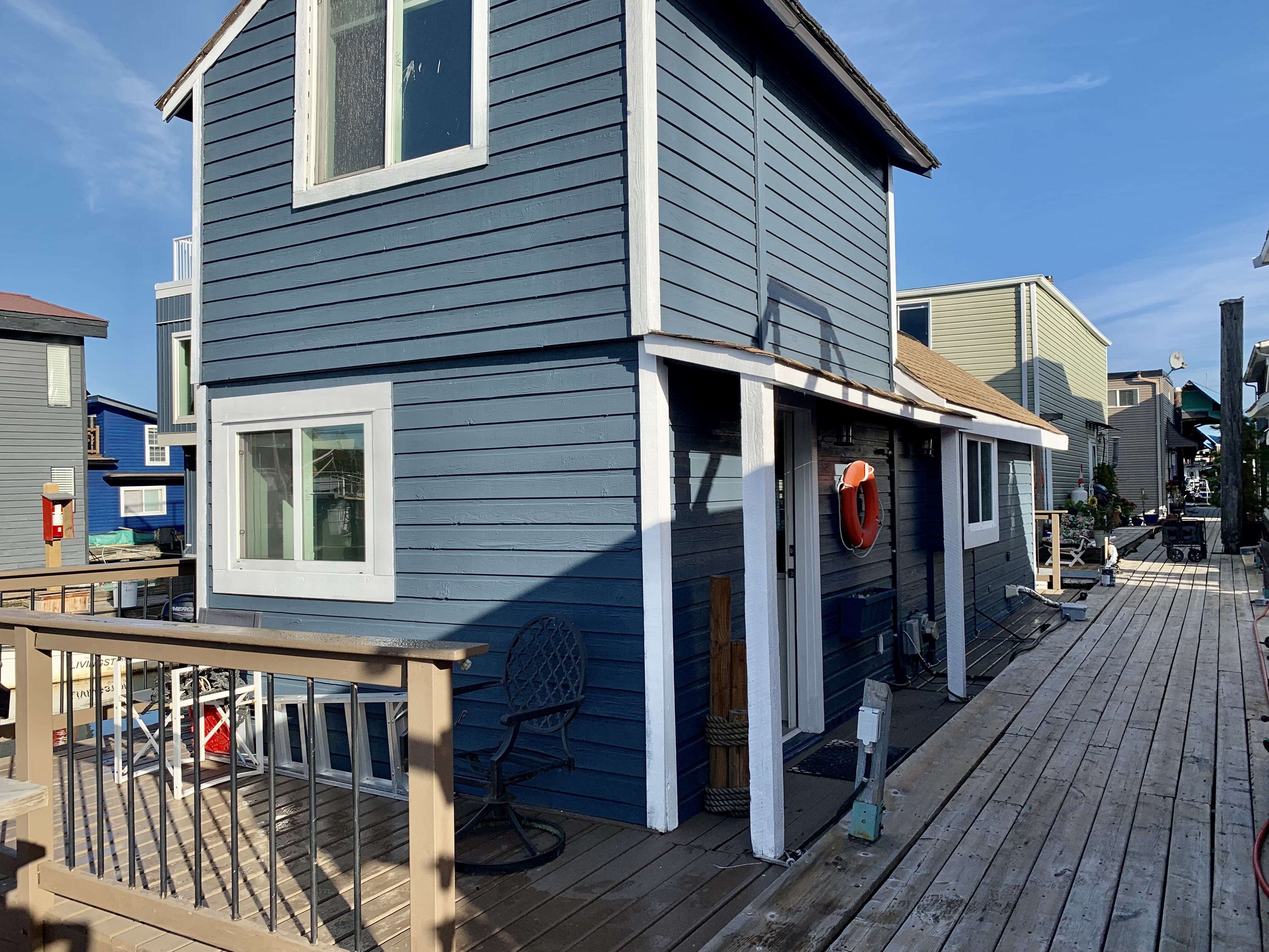Small in size but big on value in a A+ location...close to Vancouver, Airport and 1 block to new Canada Line station currently under construction. Completely redone in 2014 with positive flotation, asphalt roof, plumbing, hot water tank, 100amp electrical, double glazed windows...2022 repainted interior and exterior, deck re- stained and new insulated ceiling in living room. Hook-ups for stacking washer/dryer. Open concept provides a spacious feel. Roomy loft bedroom at one end and another loft at the opposite end which could be a spare sleeping area or storage. South exposed deck with full on river views. Pets, children and month to month rentals allowed. Moorage is $1100/m and includes 1 vehicle parking, hook up to water, power, sewer and dock maintenance.
