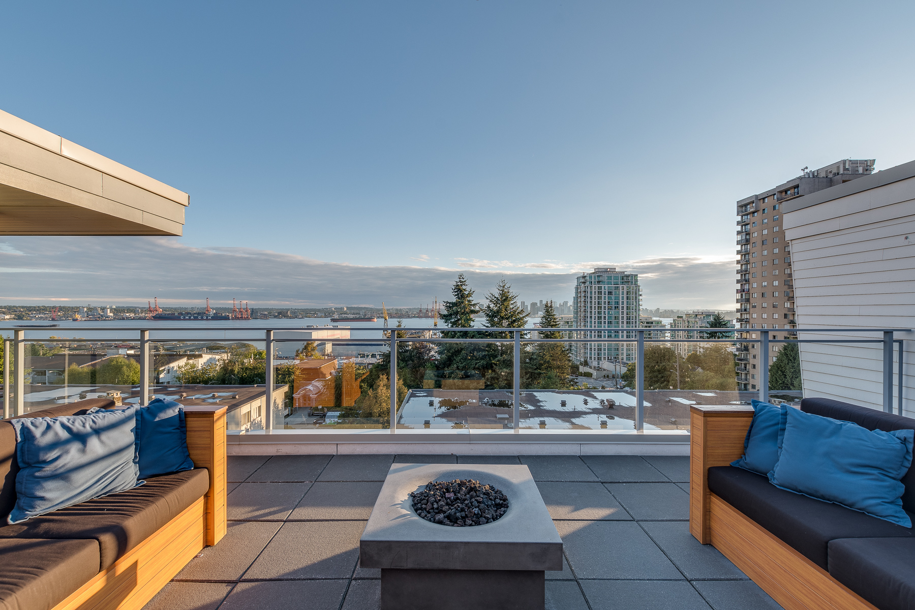 Beautifully appointed 2 BED + DEN unit with 2 full baths on the 2nd floor in popular Lower Lonsdale. A sun lover’s oasis with a spacious and private south facing deck w/peek-a-boo views. The kitchen features a large island w/seating, quartz counters, built-in pantry and a gourmet stainless appliance package. Great layout, generously sized rooms, master w/large walk-in closet and spa-like ensuite w/double sinks. Enjoy quality laminate flooring and tile throughout, radiant heat and 9’ ceilings. This LEED Gold building is complete w/rooftop patio, BBQ and fire pit, gym, car wash station and bike room. 1 parking and 1 storage, pets and rentals allowed. 1 block off Lonsdale and you're surrounded by restaurants, cafes, shops and pubs. Close to the seabus and the Quay too! OPEN Oct 14, Sun 2-4pm.