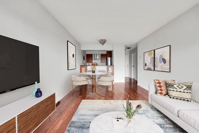 Attention investors + first time buyers! Great value in this nicely updated 1 bedroom, 1 bathroom condo in Lower Lonsdale, with in-suite laundry! The home features an open kitchen/dining area with stainless appliances, maple cabinetry and granite counter tops, beautiful hardwood and tile throughout, and updated bath. Spacious living and bedroom. Enjoy the large south facing balcony with skyline views and lovely fall colours, rooftop deck too. Steps to Emerald Park and the newly upgraded Hamerlsey Park. Pets + rentals are permitted, 1 storage + 1 parking. The location can't be beat. Walk to all of the popular Lower Lonsdale restaurants and shops, the seabus, Quay or your choice of local brewpubs and eateries just down the block. Don't miss out on this great opportunity.