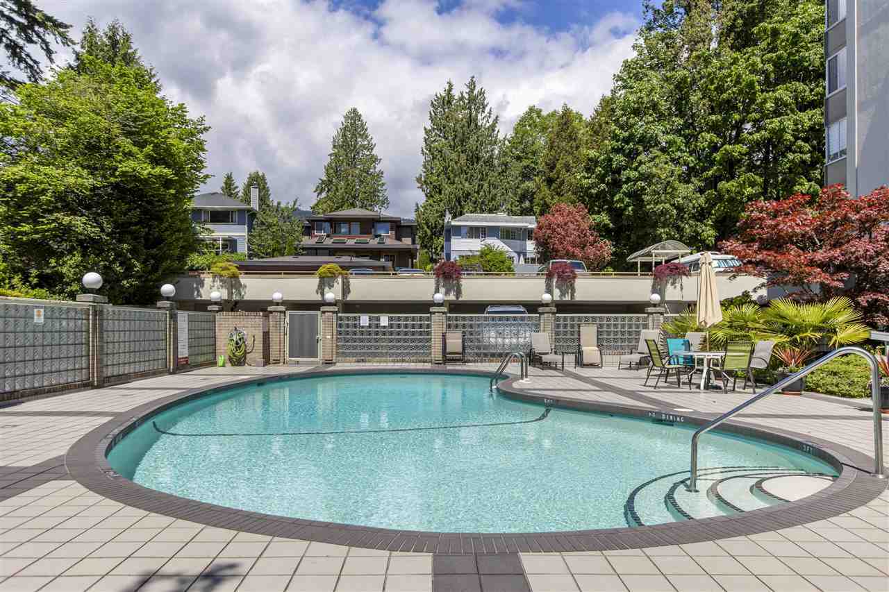 Welcome to the largest 1 bedroom + flex floor plan at Oceanbrook in Ambleside! Enjoy a quiet, private outlook w/mountain views, super bright end unit with loads of windows and privacy. The XL 18' foot solarium can be used as home office, reading or yoga room, an exercise area, or all of the above! This home features updated kitchen/bath/paint (2017), hard surface flooring throughout, extra in-suite storage plus a locker just down the hall. Spotless well maintained concrete building, healthy CRF, free laundry, indoor/outdoor pools, sauna, hot tub, live-in care taker, party and exercise rooms, plus beautiful gardens. You can't beat the location with walking distance to the seawall, shopping, restaurants, transit, rec centre. Low maintenance includes heat and cable. Make your move!