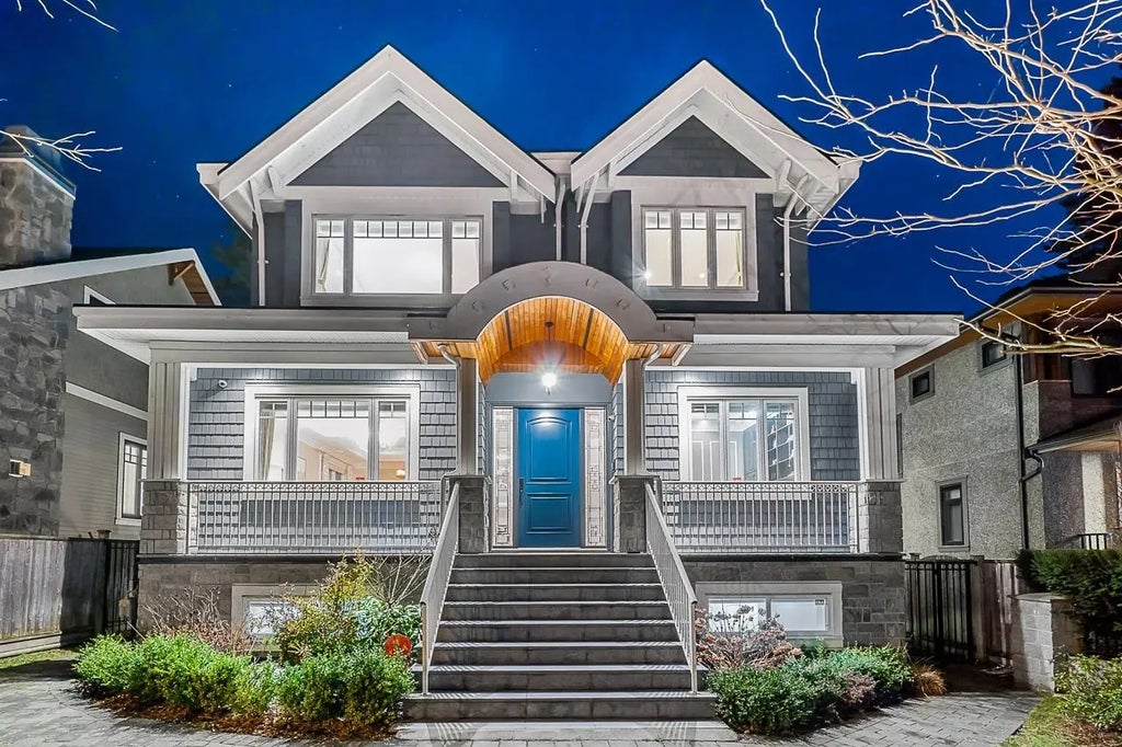 Situated at the prestigious Dunbar neighbourhood, this elegant custom house built on a prime 50'x130' property. Functional open floor plan, spacious living and dining room, gorgeous main kitchen with a fully equipped Wok kitchen let to outdoor covered sunroom, perfectly for family entertainment. The top floor features with four bedrooms, including a cozy spacious master bedroom with spa-like bathroom. The lower level comes with a sizable theatre and open rec room, wet bar & wine cellar and two other bedrooms for guests. Fabulous location, quiet neighbourhood, close to top school St. Georges and Crofton and UBC.