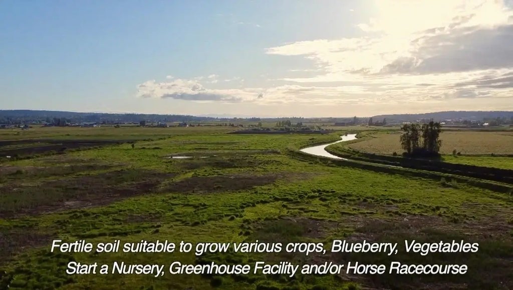 This property is connected to city water and boasts 100% Burrow ditch water for farming. The Sluice Gate is much larger than the main switch in the house and allows the farmer to bring irrigation water from the Burrow ditch into the south ditch of the property. When the farmland does not need irrigation water, sluice gate must be shut off ,then the farmland water will flow from the South ditch through Sluice gate’s culvert into Burrow ditch. Rarely available big acreage farmland. 57.139 acres (according to BCAA) fronting Highway 15 and 176 Street. Good growing field for all kinds of vegetables including blueberries, vegetables, or build your all-weather nursery or greenhouse. Premium location, close to major shopping centers, school, entertainment and the US border. Build your dream home.