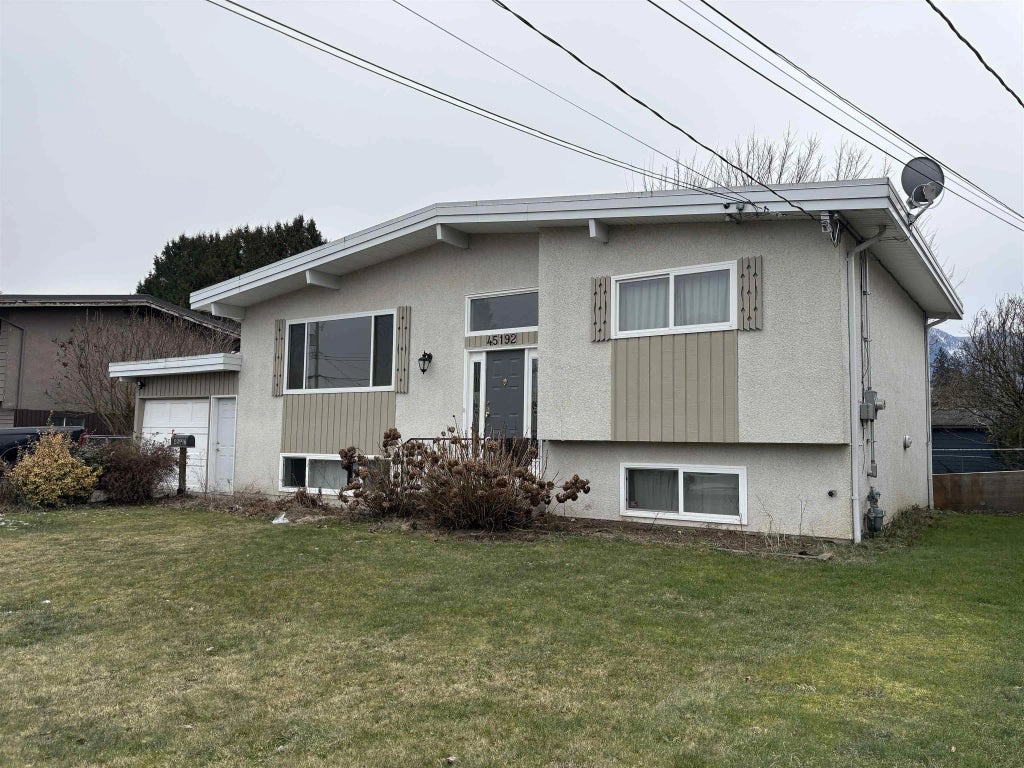 Lot size 7684 SF bolds potential for subdivision, to be verified with authorities, 4 Bedroom 2 Full Bath, walking distance to schools and amenities, South. facing fully fenced backyard with large covered patio is quite an enjoyment Major updates include Vinyl Windows, vinyl decking with aluminum cover, furnace and electricals. photos from the seller Plenty of area at the front for parking and in garage. Unauthorized full bathroom in basement, Tenanted property, showing by appointment Check with City of Chilliwack on Subdivision potential