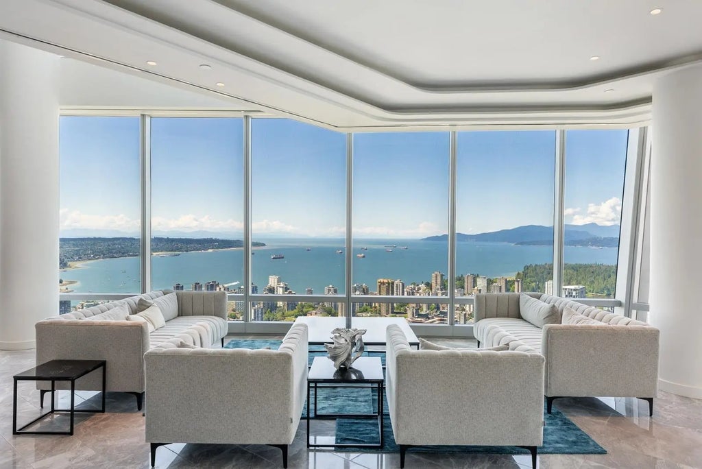 Welcome to Penthouse 1 at The 1151 Residences. Rising above the city on the 68th floor of Arthur Erickson’s architectural icon, this three-level penthouse offers sweeping 180-degree panoramic west-facing views of Coal Harbour, English Bay, Stanley Park, and the North Shore Mountains. Thoughtfully designed to reflect the element of water, the home features 3 bedrooms, 3.5 baths, and floor-to-ceiling windows throughout. Enjoy the expansive private rooftop terrace with a custom Whirlpool hot tub that comfortably seats 10-15 people. Includes a 4-stall parking garage, 1 outside parking stall, 2 storage rooms, 24 hours' concierge—this is elevated living redefined.