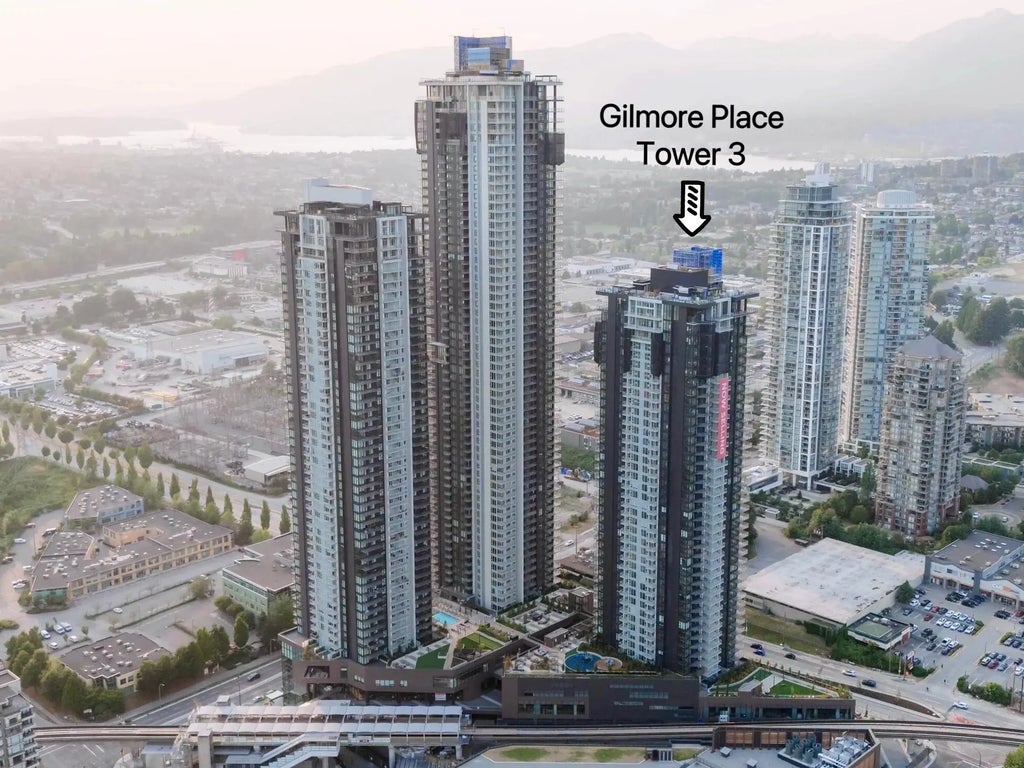 Welcome to Gilmore Place Tower 3, an urban hub in Burnaby, ideally situated right on the SkyTrain Station. This SOUTH-facing one-bed condo offers an open and spacious layout, with expansive windows offer natural light and showcase sweeping city views. European-inspired kitchen is outfitted with premium appliances, including a Blomberg refrigerator and dishwasher, a Gulper Milano gas cooktop, and a convection wall oven, complemented by a versatile kitchen island. A built-in pantry with adjustable interior shelving ensures optimal organization. Residents enjoy exclusive access to over 75,000 sf of amenities, including pools, golf simulator, fitness centre, and etc. Easy access to top restaurants, Brentwood Mall, and the upcoming T&T Supermarket.