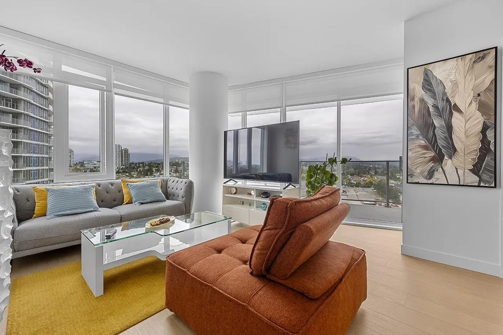 NORTH EAST FACING CORNER UNIT WITH STUNNING UNOBSTRUCTED MOUNTAIN AND CITY VIEW!!!!!Beautiful concrete building by Ledingham McAllister. Azure II. This 2 bedroom and 2 bath unit have it all! from Air conditioning, Stainless steel appliances, Full Load Washer and Dryer/Gas stove and MASSIVE balcony for your year round enjoyment. It also comes with a DEN for office use or extra storage space. It has gym facility, Amenity room/1 parking stall and locker. Within walking distance to Edmonds and 22ND ST SkyTrain station, Taylor Park, Elementary schools and Community Center.OPEN HOUSE JUNE 21 & 22,11-1
