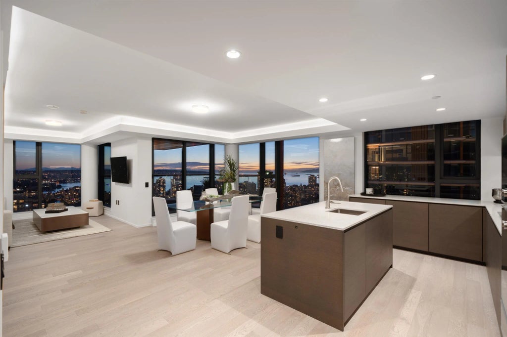 Welcome to Landmark on Robson a world class building designed with sophistication & elegance throughout! This purposely designed Ikebuchi interior boasts 4 bedrooms, 4 bathrooms & over 300 degrees of spectacular wrap around VIEWS of Vancouver! A spacious entertainers dream with over 3,000 square feet of combined living area and 2 large outdoor terraces. Special features include custom wood walls & closets, integrated cove lighting, Gaggenau Appliances including 3 Refrigerators, motorized blinds & a massive Primary suite with dual closets & spa like ensuite. Club Robson offers over 18,000 square feet of amenities that are highlighted by an ozone pool, fitness and yoga centre & 24 hr concierge. This suite also offers 2 private double car garages & 2 private storage. Trades are welcome.