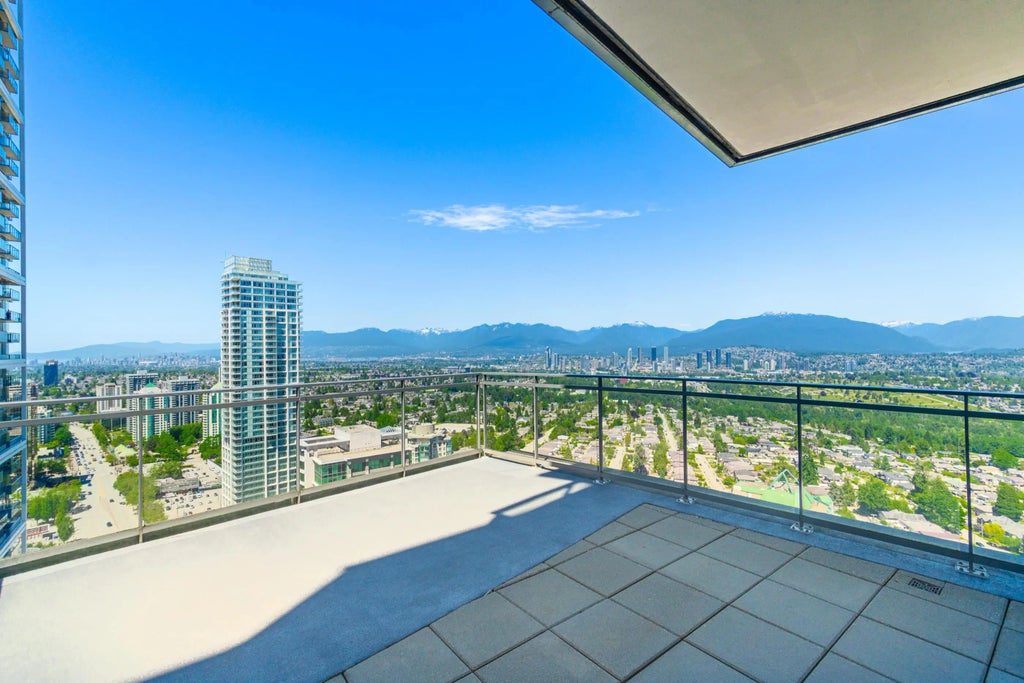 Soar above the city in this luxurious 1,338 sq. ft. sub-penthouse by Anthem Properties at Station Square 1, showcasing 270-degree panoramic views, 10-ft ceilings, and an expansive open layout. Featuring air conditioning, heated ensuite floors, motorized blinds, and premium appliances, every detail is designed for comfort and elegance. Step onto the 675 sq. ft. private balcony with gas and water hookups—perfect for entertaining or relaxing under the stars. Located steps from Metrotown, SkyTrain, and Crystal Mall, this rare opportunity offers unmatched urban living. Open House Oct 11 Sat 3:00 - 5:00 PM, Oct 12 Sun 2:00 - 4:00 PM.