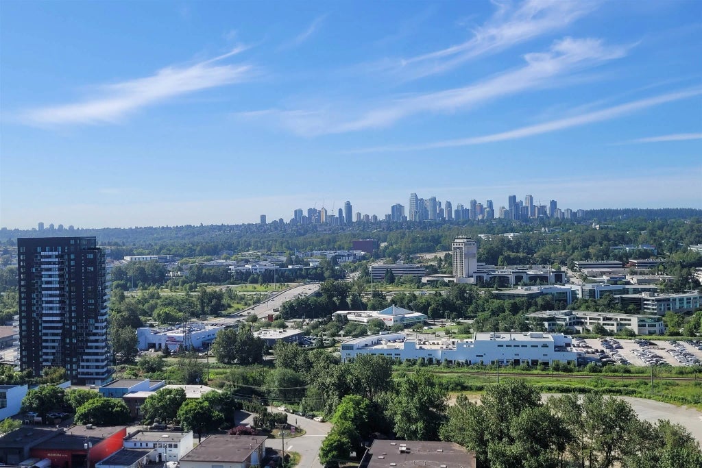 PANORAMIC VIEWS ! Beautiful concrete High Rise Condo VANTAGE by BOSA. EXCELLENT LOCATION ! Well kept SOUTH EAST CORNER UNIT with 1,269 sq.ft. and 271 sq.ft. of large balcony. Almost 9' ceiling, 2 Large Bedrooms, 2 Bathrooms & open concept Den, Master bedroom with another 206 sq.ft. balcony, Floor-to-ceiling windows, Laminate wood flooring, Gourmet kitchen with granite countertops and stainless steel appliances. 1 Parking & 1 Storage Room. Amenities include 24-hour Concierge, Social Lounge, FITNESS CENTRE, HOT TUB & SAUNA. School Catchments are Alpha Secondary & Kitchener Elementary. Very convenient location- Brentwood & Gilmore Skytrain, The Amazing Brentwood shopping, Solo District, Costco, BCIT, SFU, etc... MUST SEE!