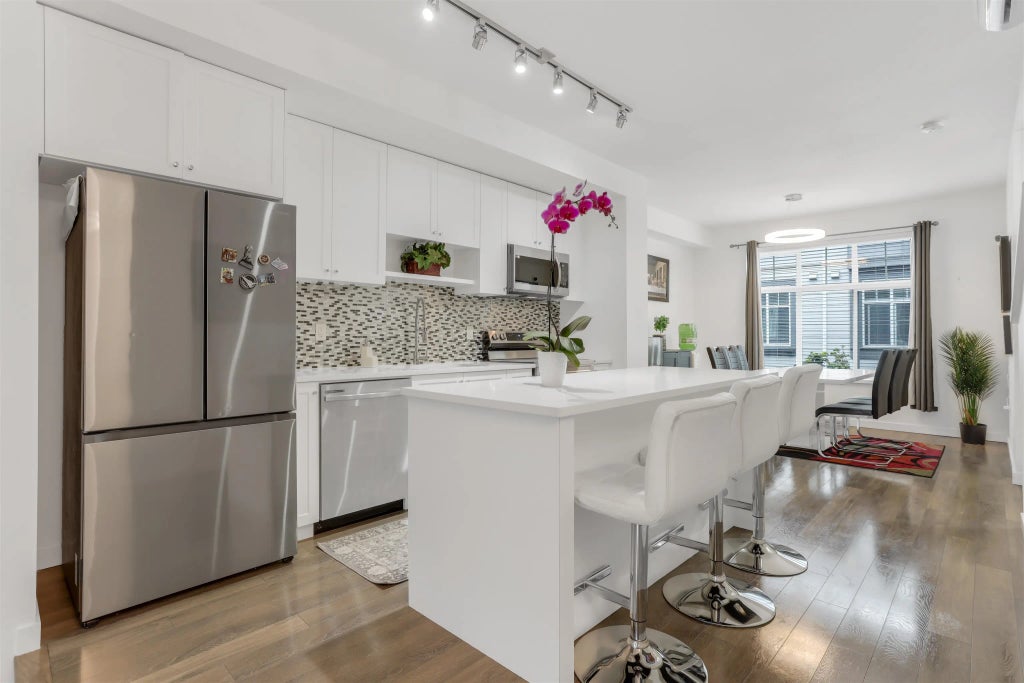 Like-New Condition! This air-conditioned 4-bedroom, 3.5-bathroom townhouse features a bright, open-concept layout with a modern kitchen, quartz countertops, and stainless steel appliances. A convenient bedroom and full bathroom on the lower level are perfect for guests. Upstairs, you’ll find spacious bedrooms, a primary suite with a walk-through closet and ensuite, plus in-unit laundry for added convenience. Ideally located close to shopping, restaurants, recreational facilities, and just a short walk to the upcoming SkyTrain station. If you're looking for comfort, convenience and contemporary design, this is the one! Call now for your private showing. Open house Sunday 2-4PM.