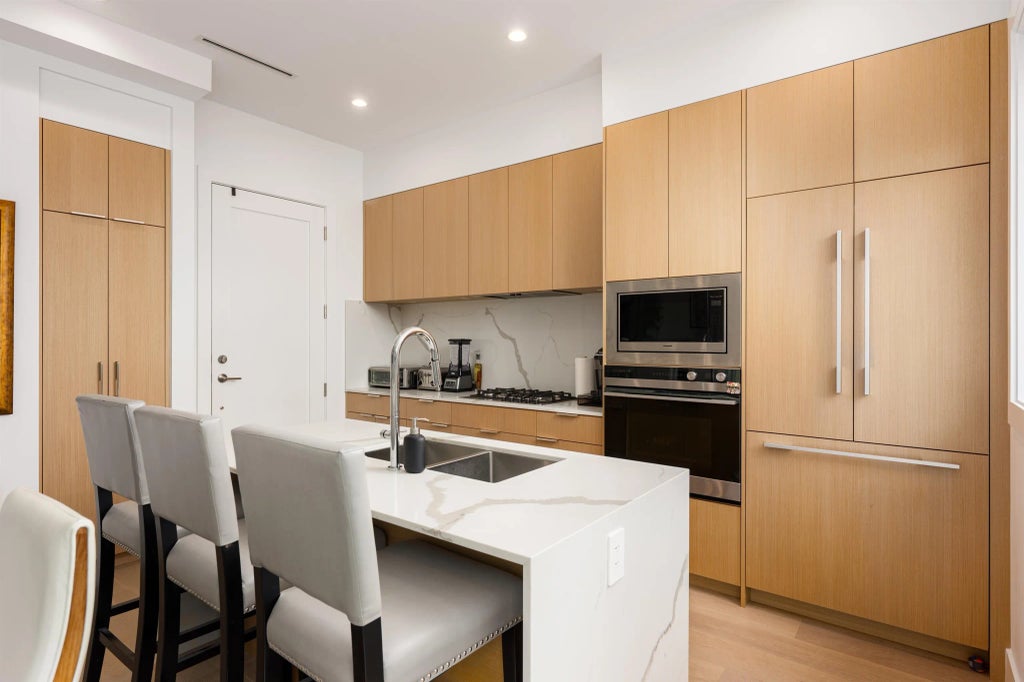 Rarely available!!! Well maintained 3 yrs young BACK unit of 1/2 duplex in Marpole area, 4 bedrooms 4 bathrooms sitting on a 36 feet wide lot. Open concept gourmet kitchen with stone counter top and island. High end appliance with panel matching fridge. Spacious living room with modern fireplace. Oversize patio door and window to enjoy the quiet private backyard. 2nd floor master bedroom ensuite with custom cabinet. In addition another 2 bedrooms and full bath. Top floor is a spacious bedroom w/ ensuite & covered balcony with city views. Single garage with EV, radiant heat, AC, HRV, security/camera system. Prime location close to Marine Gateway skytrain, T & T and schools. Must see.