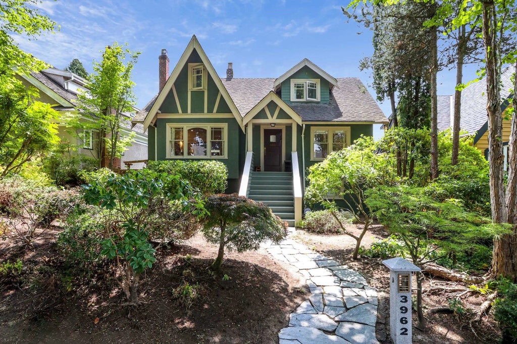 Dunbar! Large LOT 50' x 122' South facing, with well maintained mature landscaping. Many improvements throughout this family home over the years, including newer kitchen w/granite counter tops & stainless steel appliances (Wolfe Gas stove) & maple cabinetry. Very bright eating area w/ French glass doors to deck & lower patio. Along with 2 bdrms, main floor boasts beautiful oak hardwood floors & leaded glass doors. 2 generous bdrms upstairs w/large bath, soaker tub & separate shower. Lower level has suite potential if desired, with bdrm, full bath, storage & rec room with French doors leading to garden patio. Ideal setting on quiet street close to Chaldecott Park. Great school nearby: St.George's School, Lord Byng Secondary, QE Annex.