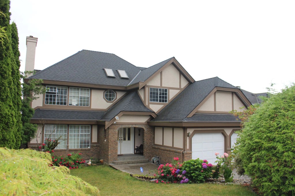 This classic Tudor-style executive home showcases exceptional craftsmanship and elegant design. The well maintained exterior welcomes you to a spacious 4,280 sqft layout across three levels.The upper floor features five bedrooms and four bathrooms, while the lower level offers an entertainer's dream recreation/games room with a high ceilings, a wet bar and a walkout to a covered patio. The gourmet kitchen boast a center island, solid oak cabinetry, and a bay-windowed eating area. Sliding doors from the family room open to a huge balcony with breathtaking panoramic views of the Fraser River, Mountain Baker and Port Mann Bridge. Nestled on a beautifully landscaped 7,434 sqft lot in a quiet, upscale neighborhood, this property is freshly fenced and ready for quick possession.