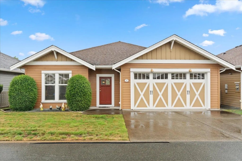 Clover Creek, 45+ gated community, offers countryside peace & quiet yet is just 5 min. to shopping & services. This 1542 sf ranch style home features a ‘Great Room’ concept, 2 beds, 2 baths & den. Add kitchen with island/eating bar, full laundry with sink, laminate flooring and 9’ ceilings throughout all make this a bright welcoming space. The yard features a private garden/patio ideal to enjoy with family and friends on lazy summer afternoons. The exterior of the home is finished with Hardy plank siding to ensure years of worry-free maintenance, and the driveway provides room for 2 guest vehicles. A pet friendly complex with geothermal heat/ac included in the maintenance costs. A home with all the features and comforts you are after at a reasonable price…view now before it’s gone!!