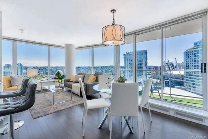 BEST DEAL! Below Assessment. Coner Unit at popular ESPANA in Yaletown, it offers bright spacious open layout 2 bed + den + solarium, den could be a third bedroom! Amazing sweeping views of Burrard Inlet & False Creek. Soaker tub & built-in storage in the ensuite, designer wallpaper in the master bedroom, and an accent wall in the solarium. Home also features floor-to-ceiling windows in every room, laminate floors throughout, granite counters, a large European style kitchen with s/s appliances, a built-in wine fridge & a wine glass rack. The building offers a pool, steam room, hot tub, gym, theatre, library, lounge & 24 hr concierge. Just steps away from Costco, Skytrain station! Short term rentals (including Airbnb) are permitted.Your gold mine! Next available showing time: Sep 2/3/7/11/15