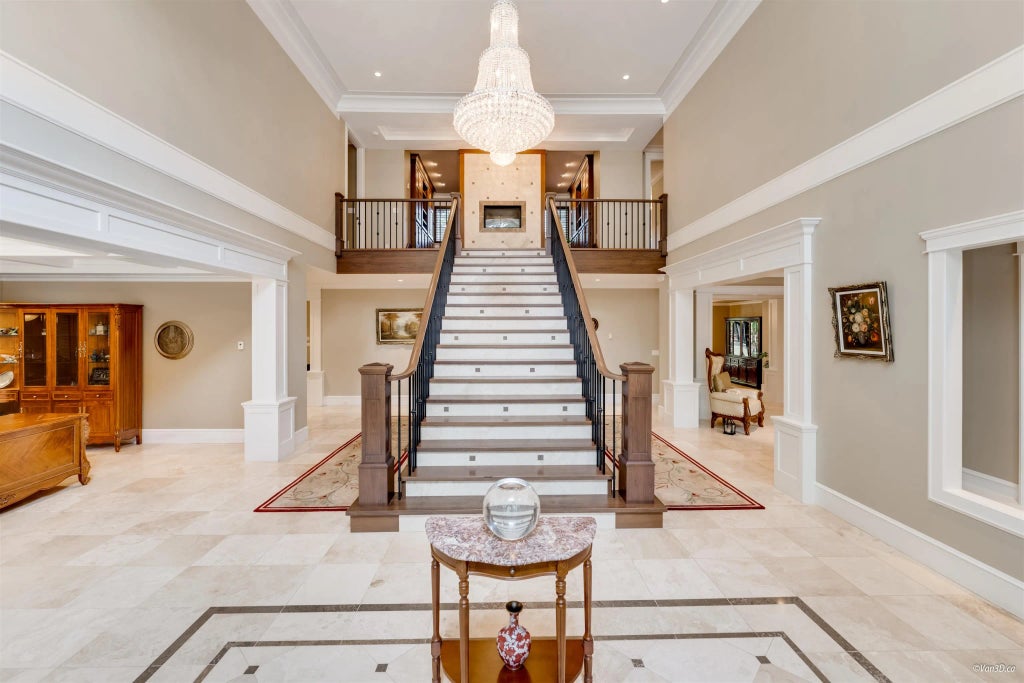 Experience timeless elegance in this 1-ACRE LOT stunning European-inspired gated estate, nestled in the prestigious Elgin Chantrell neighbourhood. Designed for luxurious living and entertaining, this grand limestone residence offers expansive living spaces and impeccable craftsmanship throughout. A dramatic foyer with soaring ceilings and marble flooring sets the tone for sophistication. The main level includes formal living and dining rooms, a private office, and a beautifully appointed kitchen with French doors opening to an expansive wraparound deck. Upstairs, you'll find a charming library and 4 spacious bedrooms, including a luxurious principal suite. The walkout lower level is a true entertainer’s dream, featuring a sprawling recreation room, media room, gym, and more.
