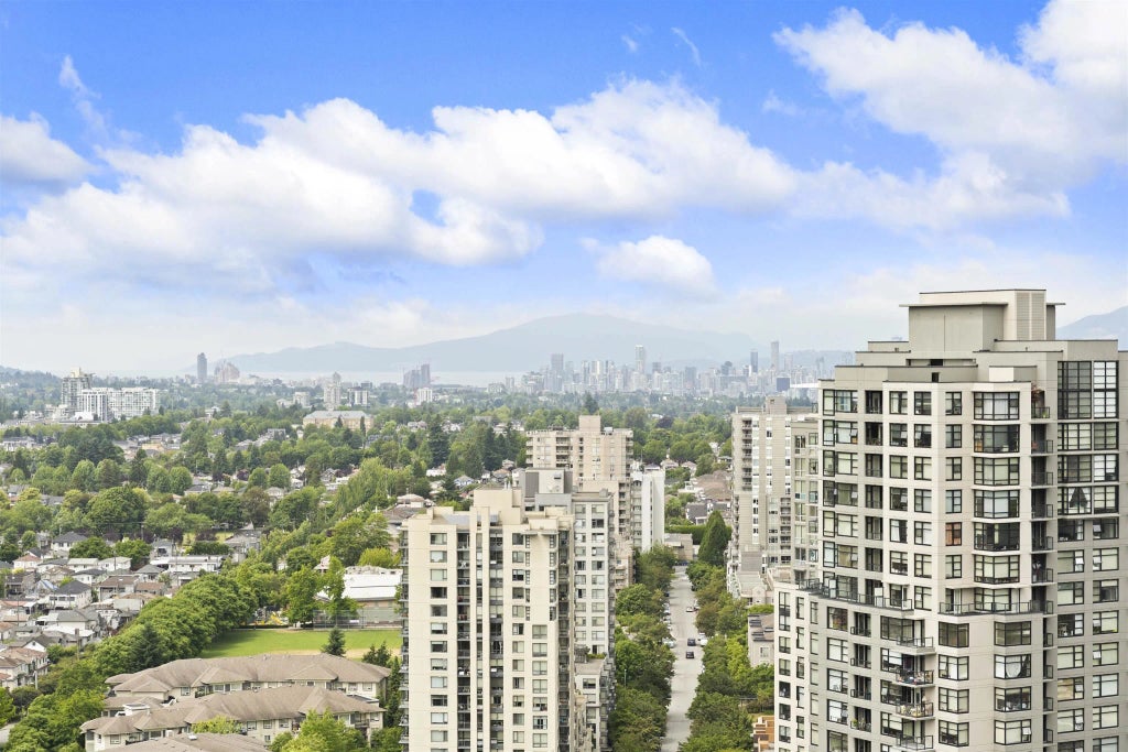 Discover stunning views and modern living at Wall Centre Central Park! This 2 beds, 1 bath SOUTHWEST facing, CORNER unit offers UNOBSTRUCTED PANORAMIC VIEWS. Features cocoa wood-tone laminate floors, sleek quartz countertops, and stainless-steel appliances with gas range, and large balcony. Convenient location —just steps to Joyce-Collingwood SkyTrain, parks, and vibrant Metrotown shopping. Enjoy top amenities including a fitness centre, 60-ft lap pool, hot tub, rooftop terrace, and garden. Comes with 2 PARKING SPACES and 1 LOCKER! Book your appointment today for a showing!