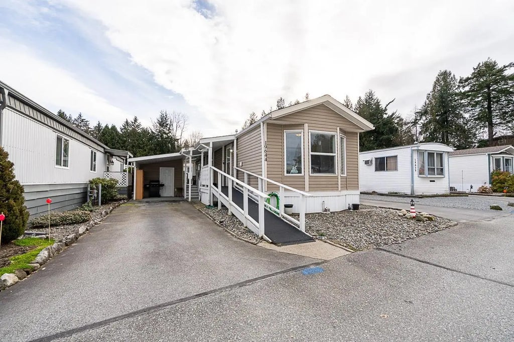 Welcome to this highly sought-after mobile home park. This well-maintained home, built in 2012, features a spacious layout with vaulted ceilings. Offering 2 bedrooms plus a den and 2 bathrooms, including a full ensuite off the primary bedroom. The large kitchen and dining area showcase bright white cabinetry, and the comfortable living room is filled with natural light from multiple windows. Step outside to a covered patio deck leading to a low-maintenance yard. This home is wheelchair accessible and includes a large 18x9 workshop and an indoor swimming pool! Conveniently located close to transit and shopping—an ideal location!