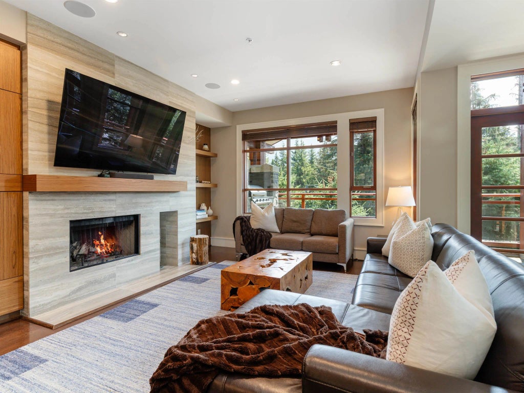 Experience refined mountain living at Fitzsimmons Walk. This townhouse blends modern design with a West Coast aesthetic and offers seamless indoor-outdoor flow. Take in panoramic views of Whistler and Blackcomb Mountains, enjoy generous sun exposure, and relax in exceptional outdoor spaces featuring a built-in BBQ, outdoor fireplace, and private hot tub. Inside, the open-concept layout includes a flexible floor plan with family room, vaulted ceilings, and a dual-sided fireplace in the primary suite. Underground parking and ample storage complete the package. Phase I zoning offers flexibility with unlimited owner usage and nightly rentals permitted.