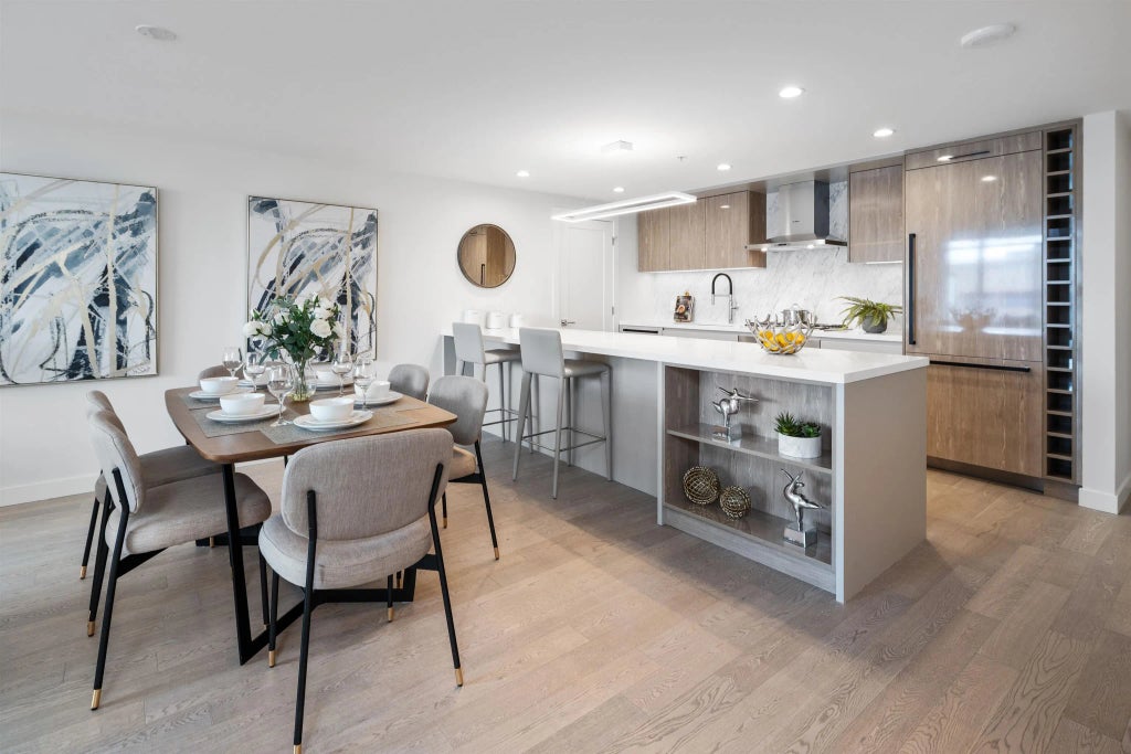 Bring your furniture! Extra large two bedroom offers plenty of room in the primary for a full bedroom suite AND features extra closet storage. The primary ensuite includes a walk-in shower and soaker tub with heated tile floors. Huge kitchen with island seating and a nearby laundry room for easy access. Enjoy sunset ocean views from your private patio. Two parking stalls, one private EV charger, storage and access to a 3000 SF multi-purpose space designed to provide lifestyle conveniences you will use every day. Walking distance to the East Beach promenade, White Rock Town Center, schools, parks and many eateries and amenities. Easy living w/Concierge on-site, safe parcel storage, and a guest suite for friends and family. Final homes remaining! Photos of 6th floor unit, same floor plan.
