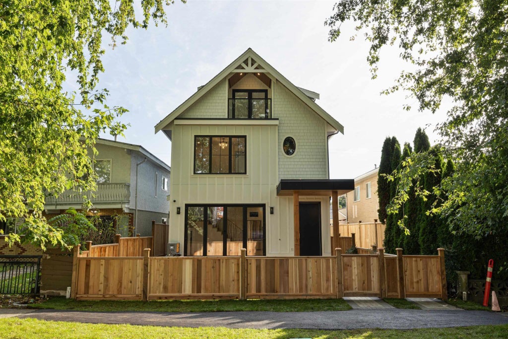 Discover elevated living in this exquisite, high-end modern duplex in a vibrant neighbourhood. This bright, private south-facing home offers 3 generous bedrooms, a primary suite with walk-in closet and office, plus 4 spa-inspired bathrooms. The open-concept design features a cozy gas fireplace for gatherings and a chef’s kitchen with high-end appliances & ample counter and cabinet space. Enjoy seamless indoor-outdoor living through panoramic eclipse doors to a private backyard, perfect for relaxing or entertaining. Radiant heated floors provide year-round comfort, making this one of the last new duplexes with this rare feature. This high efficiency home also has hot water on demand and AC. Ideally located minutes from Queen Elizabeth Park, Hillcrest Community, and lively Main St.