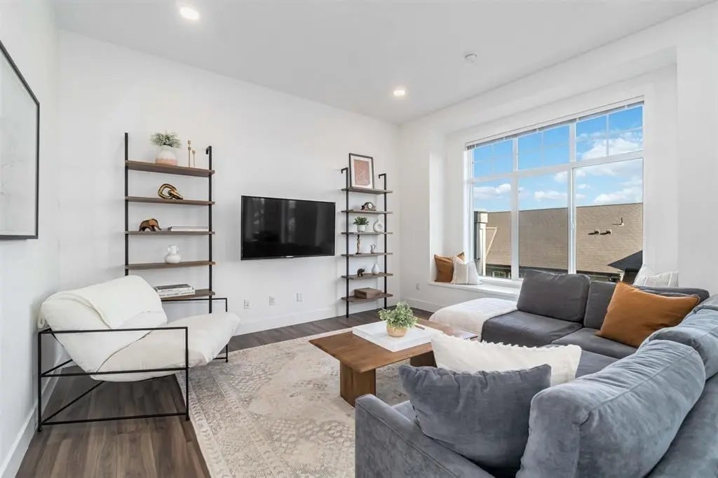 Welcome to Victoria by Mosaic, a picturesque Tudor-style townhouse community in Coquitlam's sought after Burke Mountain. Nestled in nature, this 3-level, END UNIT home features 4 bedrooms, office, flex space & 4 bathrooms over 2248 sq ft of open concept living. The sun drenched main floor features 10' ceilings, large windows to soak in the MT BAKER VIEWS, and a modern kitchen with sleek cabinetry, quartz counters & s/s appliances. The lower level includes a family room with a separate entrance, an additional bedroom & a bathroom, ideal for guests. Double car garage with upgrades! Pride of ownership truly shows. Walking distance to Leigh Elem & close to all levels of schools, along with easy access to trails, parks, and all the amenities Burke Mountain has to offer! This one is a must see!