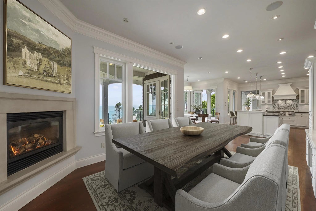 0.64 Acre Waterfront French Country Home in White Rock, elegant ocean front kitchen w/ top appl pkg: SubZero, Wolf, Meile. Main Floor: vaulted living space has wide plank fir floors, 2,322 SF. Dramatic staircase, 3 n/gas f/pl on main. 6800+ SF on 3 flrs-traditional 4 bdrOOms up-all en-suited. 2 primaries, both w/ exceptional ocean views. Elevator, radiant heated flrs w/ Viessmann boiler, fire sprinkler in home, irrig system out, h/velocity A/C, generator. All 6 bdrms en-suited, 3 w/ balcony or patio access. Walk-out basement has a licensed 2 bedrm suite 1,352 SF. Perfect for airbnb. Media & wine rm. Oversized triple garage 722 SF.. Paver driveway. Patio, balconies & decks open & covered exceed 1,700 SF. Very Aggressive price* $1,258,000 below assessment *Schools: Ray Shepherd & Elgin Sec.