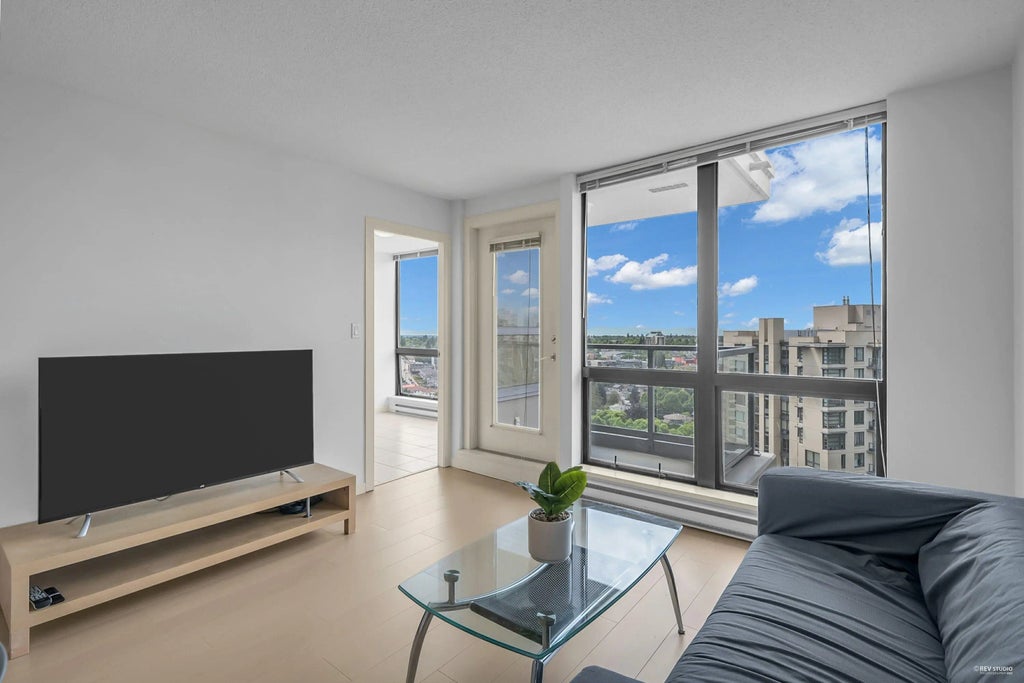 High floor renovated 1 Bed + Large Den in Latitude by Bosa! Newly renovated with beautiful laminate floors and fresh designer paint. Spacious floor plan with well-defined living and dining areas, large bedroom, and an expansive den that can be used as home office or nursery. Sweeping views of Downtown Vancouver and mountains. Superb location surrounded by parks, recreation and restaurants. Walking distance to Joyce Skytrain and Central Park. Minutes to Metrotown and Highway 1. Solid, well-managed strata with long-term owners and proactive caretaker. Low strata fees, healthy contingency fund and A/C possible! One parking, one locker included. One pet allowed. Don't miss this gem!