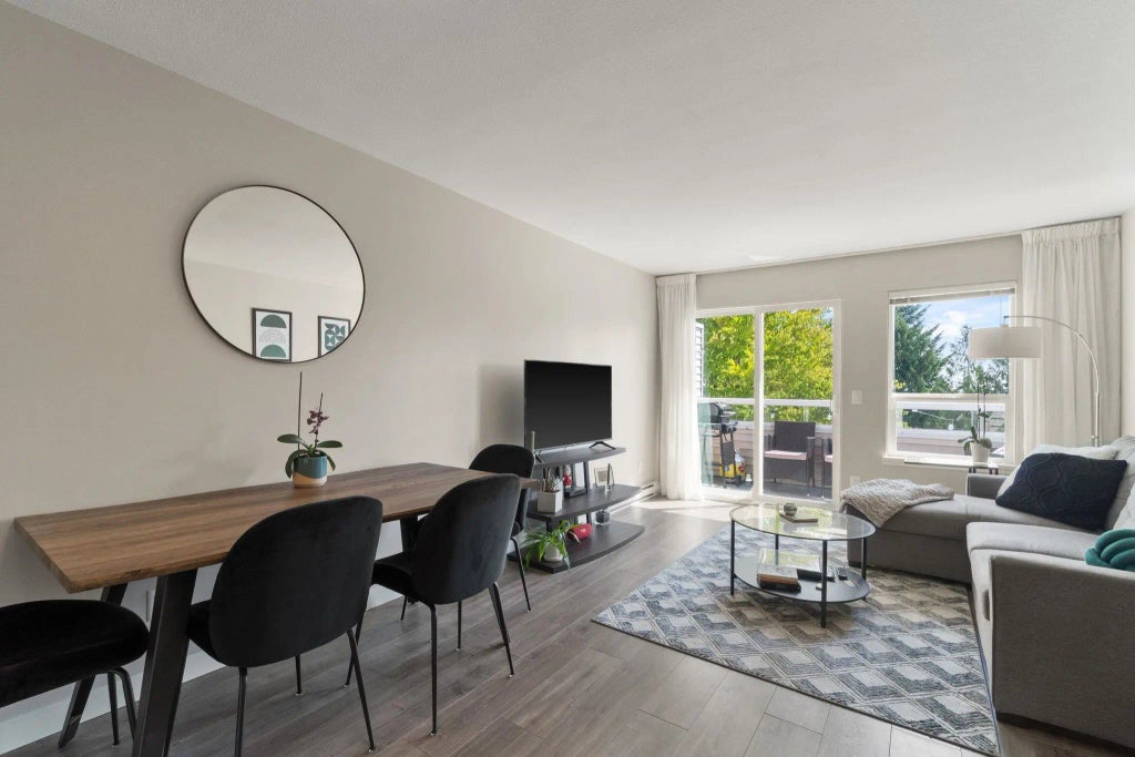 TOP FLOOR & facing the quiet side where you have views toward Mt. Baker & peaceful green space! Welcome to Bromley Manor, a very well kept building in great shape! Enjoy the comfort of updated flooring, appliances, kitchen, bathroom, a sunny southeast-facing balcony & much much more. Convenience is at your doorstep with Save-On Foods, Starbucks, restaurants & more just across the street. Outdoor enthusiasts will love being within walking distance to the trails of Mundy Park, while commuters will appreciate quick access to transit & Hwy 1. Situated in a proactive strata & a safe, welcoming neighborhood, this home also includes 1 parking & 1 storage locker. Don't miss this opportunity to own a fully renovated, top floor home in a great building with serene views!