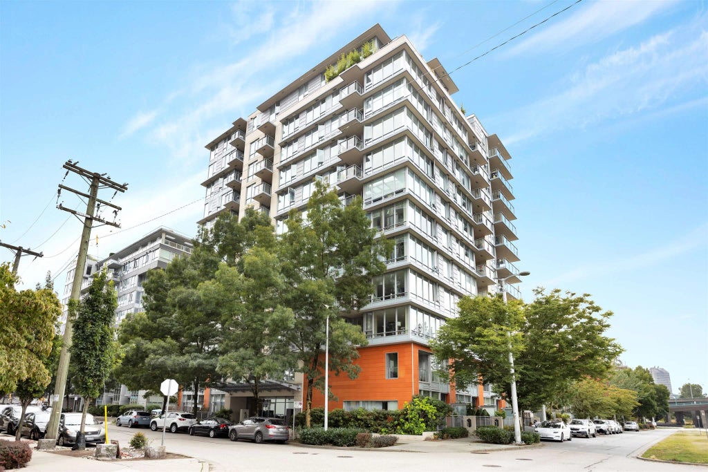 Welcome to The Foundry by Polygon - a modern one bedroom plus den condo in vibrant False Creek. This 658 SqFt home features a large primary bedroom with a walk-in closet and a versatile den perfect for a home office. The unit is filled with an abundance of natural light, beautiful west-coast colour scheme, in-suite laundry, cozy private deck with views of downtown and mountains. This LEED-certified building provides a range of amenities, including a gym, playground, EV charging, and bike storage. One parking stall is included. Strata fees cover heat and hot water. Walking distance to the Seawall, Olympic Village, SkyTrain, and various shops, restaurants. Pets and rentals are welcome.