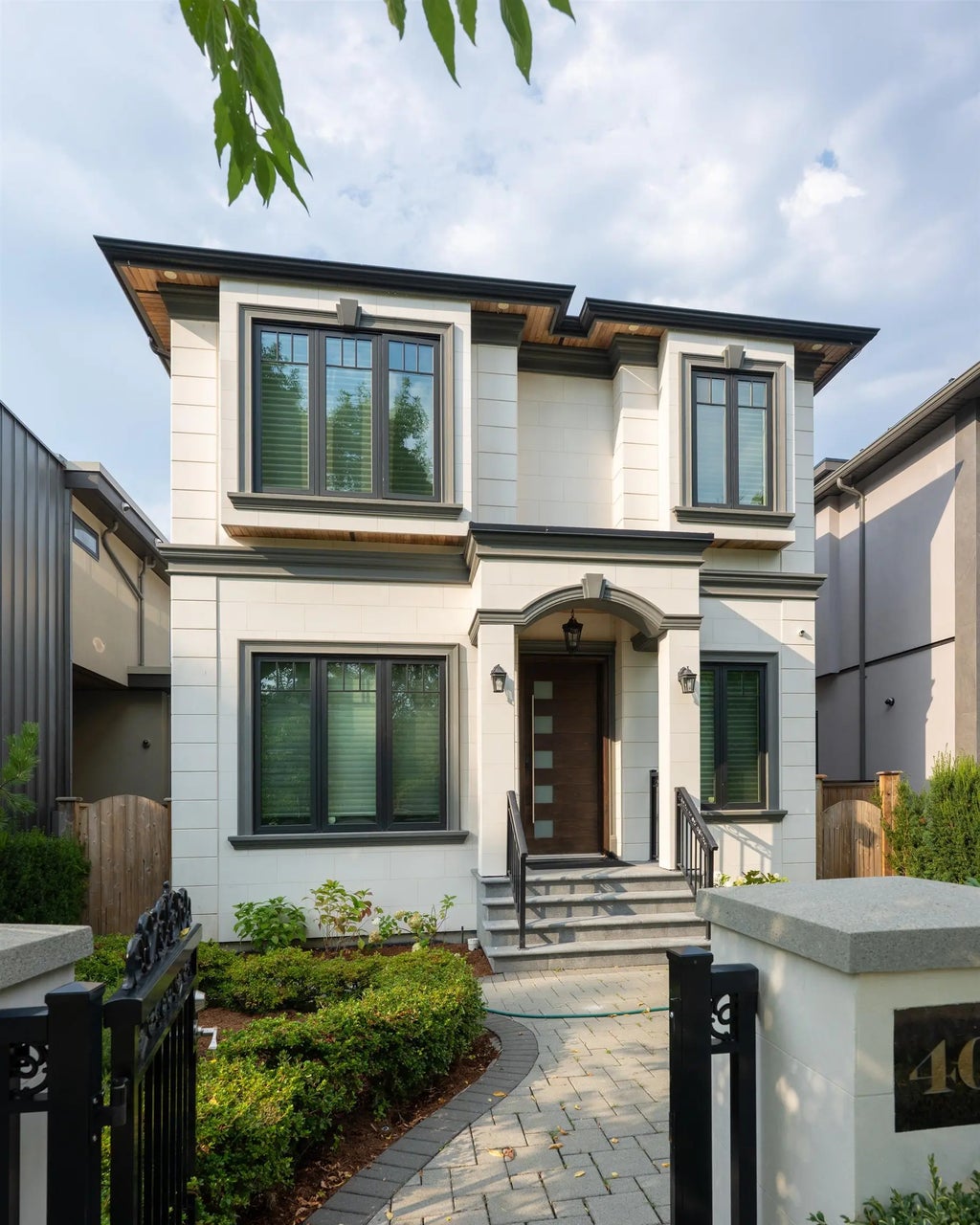 VIEW property. Very well built and maintained property located in the prestigious Point Grey area. The house offers high ceiling, open floor plan, plenty of millwork, attention to detail finishing & best craftmanship. Three ensuite bedrooms upstairs & one guest room in basement. A nice office with built in cabinet on main floor. Miele fridge, built-in oven, range & steamer. Air conditioning/HRV, in floor radiant heat. Master bedroom walk out to a balcony with open view to downtown. Magnificent view over downtown, ocean and north shore mountain from the 375 sqft roof top deck, the best spot to watch summer fireworks. Entertainment quarter in basement includes a media room, bar counter and a recreation room. Walk to Lory Byng Secondary School and a direct short ride to UBC. Pleasure to show.
