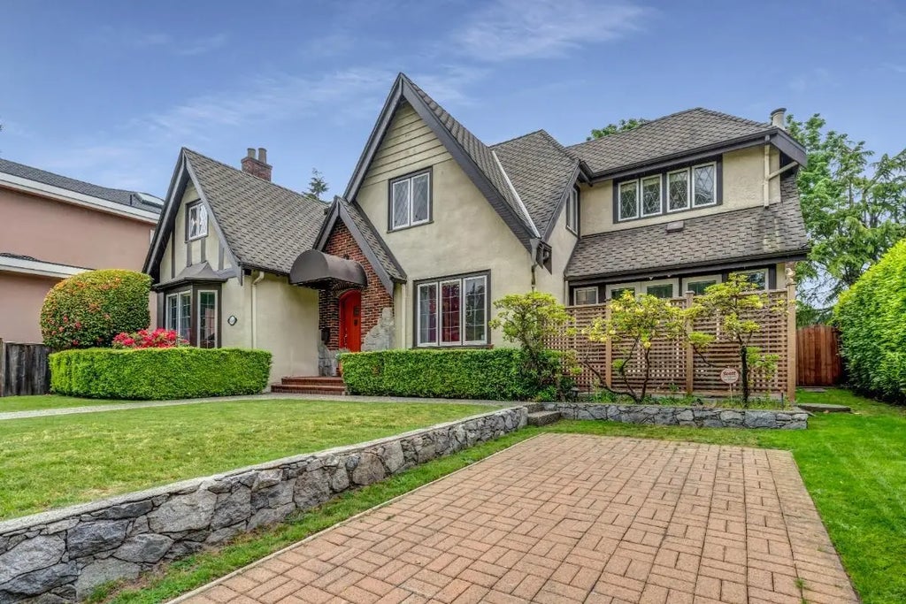 A stunning Tudor Revival residence seamlessly blends historic character w/ modern convenience. Boasting 5 bdrms & 5 bthrms, the home welcomes you w/ original, hand-crafted hardwood floors, & timeless craftsmanship. Expansive living spaces incl both formal living & dining room, chef’s kitchen w/ oversized island, Sub-Zero fridge, double ovens & gas range opens effortlessly to over 400+ sf of patio, perfect for al fresco dining. Upstairs, 3 bedrooms await, incl the sumptuous primary suite. Your private retreat features lavish walk-in closet w/ handy built-ins, Juliet balcony overlooking the garden, & spa-inspired ensuite complete w/ marble counter, w/ jetted soaker tub, rain shower, heated floors & towel rack. Prime Kerrisdale location steps from boutique shops, eateries, & golf courses.