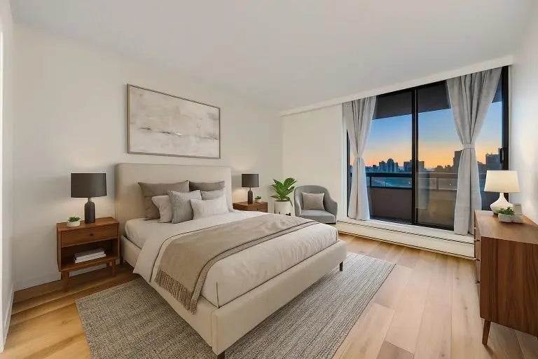 *FULLY RENOVATED* 2BD + 2BTH unit steps from Lougheed Station in concrete building. Open-concept layout with spacious covered patio and amazing views — perfect for entertaining. Two large bdrms with big windows and ample closets. Brand-new kitchen with updated cabinets, appliances (with warranty), countertops, and in-unit laundry. Both bathrooms fully redone with modern fixtures. Similar units renting for $3,000/month. Includes oversized parking and storage. Pet-friendly (2 pets up to 12kg). Healthy strata with solid contingency fund. Book your private showing today!
