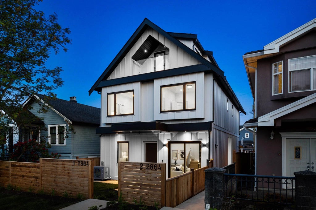 Come discover this welcoming 3 bed 4 bath BACK UNIT duplex home in Renfrew Heights. Designed w/comfort ideal for families + urban professionals w/close proximity to schools, shops, parks + restaurants. Home features 10 ft ceilings, premium flooring, functional kitchen w/integrated F&P appliances, Italian tile accents + custom built-in bar fridge perfect for everyday living + entertaining. Year-round comfort w/dual radiant floor heat + heat pump, and smart home features. Glass slider doors that lead to your landscaped private yard with 200 sf elevated trex deck area + BBQ hookup creating an amazing private relaxing space. This home offers a mix of quiet community living + urban accessibility. Private Showings by appointment.