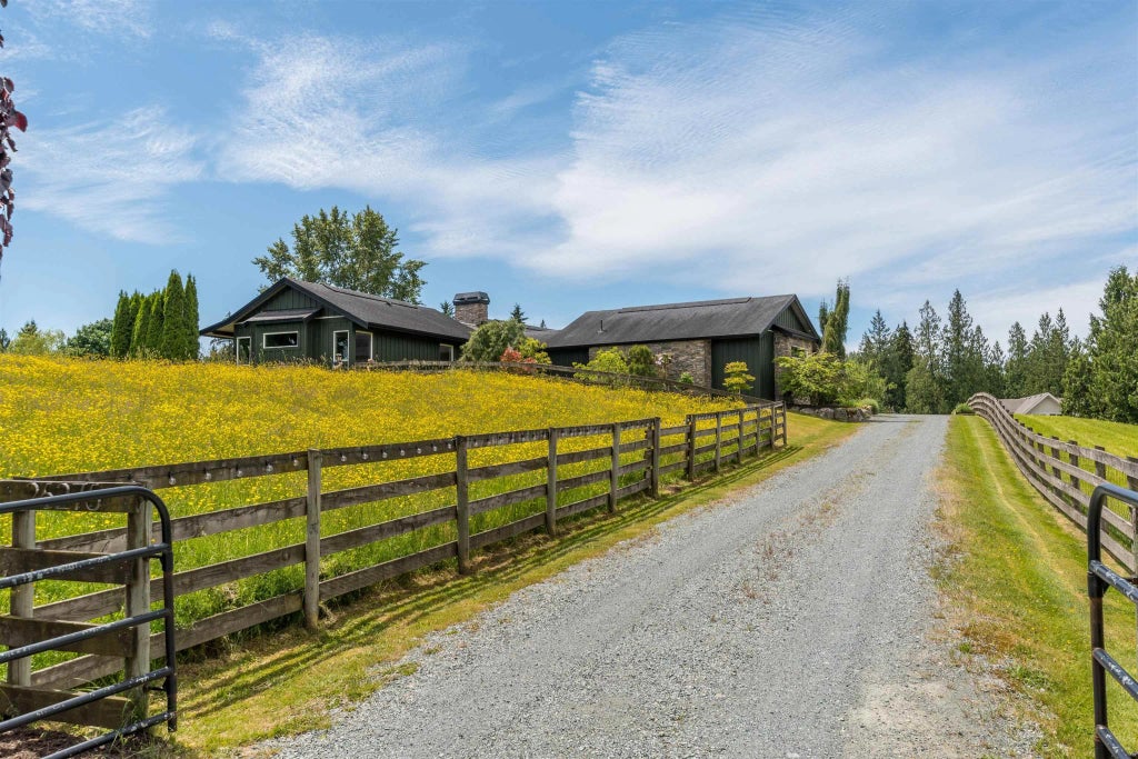Experience country luxury living in this beautiful 4-bed rancher, perfectly set up for multi gen life or hobby farm dreams. Gourmet chef's kitchen features gas stove, breakfast bar & flows seamlessly into open-concept living. Boasting 3 ensuites, including his & hers walk-in closets & private den. Rich wood & tile flooring throughout, A/C, natural gas BBQ hookup, generator, 2 hot water tanks & UV water filter add comfort. Fresh paint inside (2025) & out (2024), triple attached garage, S facing patio & an impressive 32x28 workshop (200amps, 10' ceilings) for car buff/RV. Separate 2-bed unauth suite offers flexibility for extended family, guests/income. 7-stall barn includes in/outs, hay loft, tack room, etc. Mins to Thunderbird Show Park & backing onto 160 acre park & salmon spawning stream