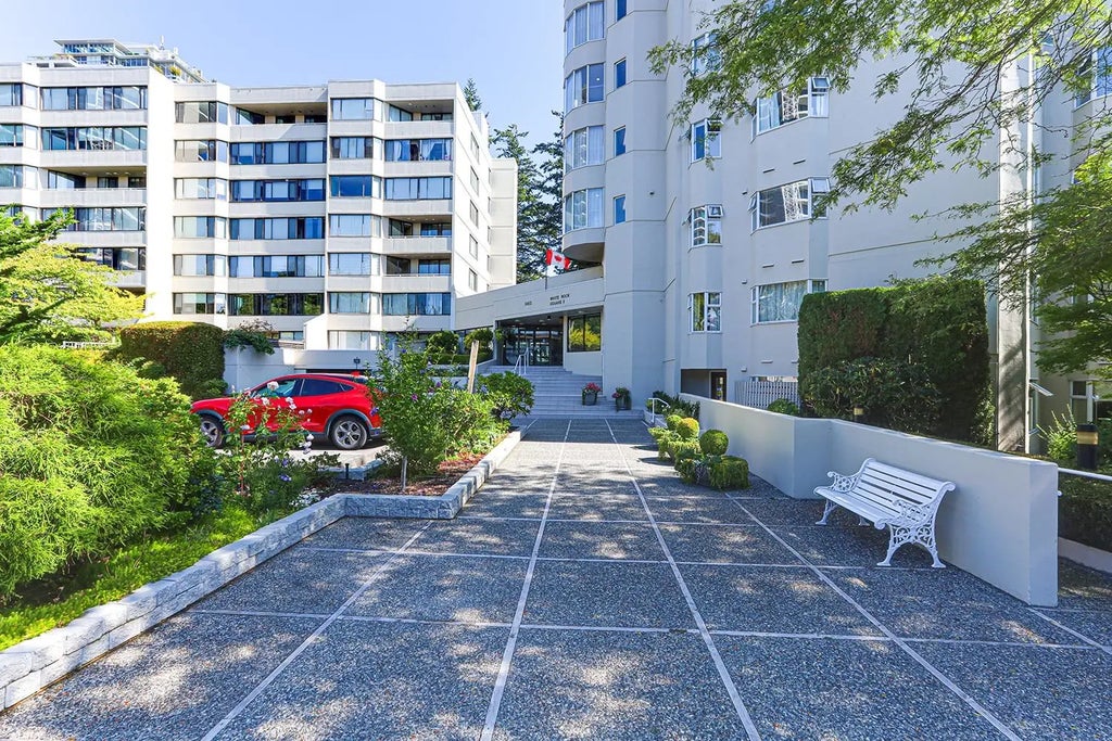 White Rock Square 2 renovated and spacious 920 square feet 1 bedroom 1 bathroom concrete condo in the heart of White Rock. This bright southeast corner/end unit features an enclosed balcony with views of Bryant Park and a peekaboo ocean view. Beautifully updated with hardwood and tile flooring, crown moulding, custom built-in seating, and a fully renovated kitchen with marble countertops and stainless steel appliances. The updated ensuite includes a walk-in bathtub. Located just steps to Thrifty’s, restaurants, the farmers market and transit. Building amenities include secured underground parking, hot water & heat (included in strata fee), and a welcoming 55+ community. No pets and non smoking building. Quick possession available.