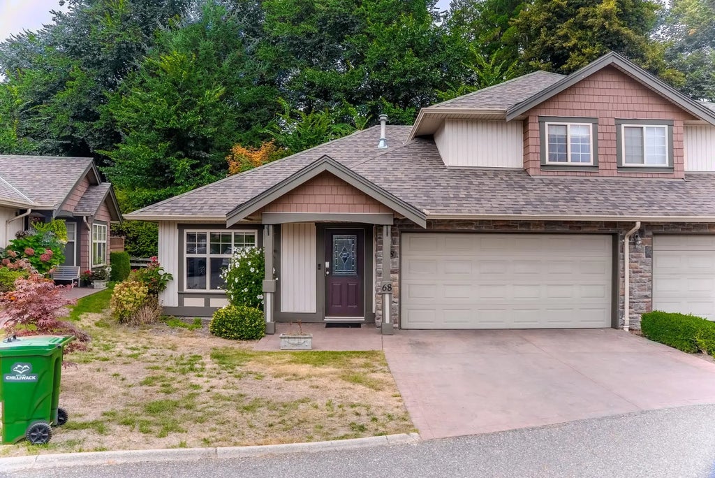 END UNIT TOWNHOME – BACKING TREED PARKLAND! This bright and private home is tucked at the back of the complex with no neighbours behind. The primary bedroom is conveniently located on the main floor, with two additional bedrooms upstairs. Recent updates include: freshly painted interior, new vinyl plank flooring throughout, kitchen and bathroom cabinets professionally resurfaced in modern colours along with Quartz countertop, updated hot water tank, and the strata roof was replaced recently. Spacious living and dining areas feature updated laminate floors, and the home includes a full double garage, double driveway (4 parking total), plus visitor parking right nearby. Added bonuses: central vacuum and a beautifully maintained complex. Excellent value—don’t wait!