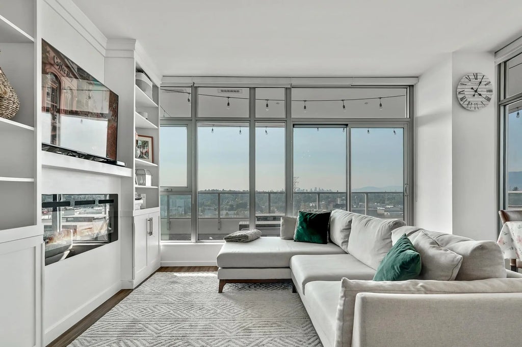 Modern 2 bed, 2 bath home at 'Triomphe'in Burnaby! Featuring a stunning custom fireplace with built-in shelving, air conditioning,Bosch appliances, and an open layout with sleek finishes. Enjoy resort-style amenities including fitness centre, outdoor pool, hot tub, steam/sauna, guest suites, concierge and more. HUGE wrap around balcony gives you stunning downtown (western) views. Steps to Gilmore SkyTrain, Brentwood Mall, restaurants, cafes, and parks. A perfect blend of style, comfort, and convenience in one of Burnaby’s most vibrant communities! 1 parking and 1 storage locker included.