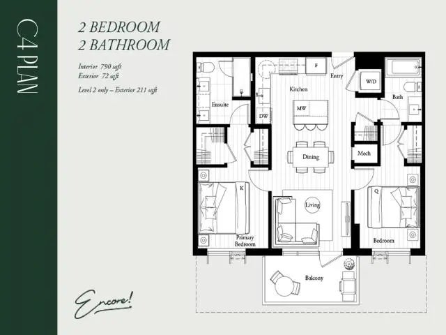 Welcome to this stunning 2-bed unit at Encore by Beedie Living! Revel in ceiling heights soaring up to 8'8" and energy-efficient windows with roller shades that enhance comfort and style. With 790 sq ft of spacious interior living, the kitchen boasts a high-performance appliance package with Fisher & Paykel appliances, perfect for culinary enthusiasts. Step outside to your expansive 211 sq ft balcony, ideal for relaxation. Enjoy the abundance of amenities at Encore, including a coworking lounge with individual office pods, a state-of-the-art fitness center, and outdoor podium greenspace. Don’t miss this opportunity; contact us today to secure your future home.