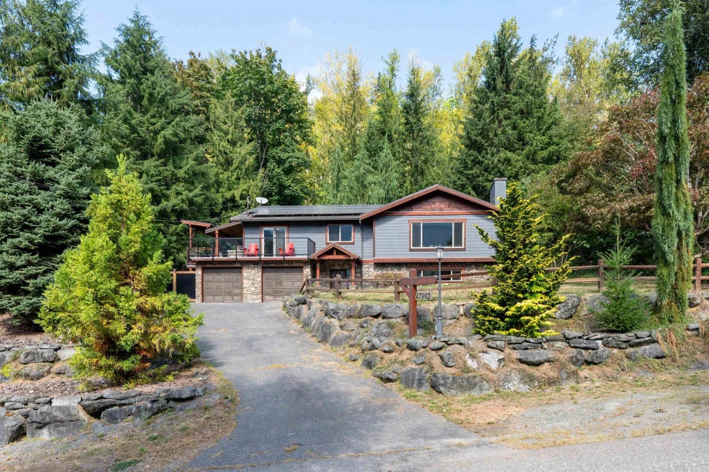 BREATHTAKING MOUNTAIN VIEWS from this beautifully updated home in the Chilliwack River Valley. Gorgeous kitchen w/custom cabinetry, granite, and stone backsplash, and living room w/high ceilings w/wood beams and high end flooring. Master bdrm has W/I closet and ensuite w/steam shower. Downstairs has engineered hickory hardwood flooring w/custom bar and woodstove. Many upgrades throughout including in-floor heating in the kitchen and baths, A/C, 8.3kw solar system provides approx 1/2 yr free power, sono system in house and outside, hardi siding, cultured stone and metal roofing! Out back is an amazing oasis w/covered sitting area, hot tub, koi pond with waterfall, outdoor kitchen, newer decking, landscape lighting and irrigation system. You will love the heated guest cabin and 12X6 shed!