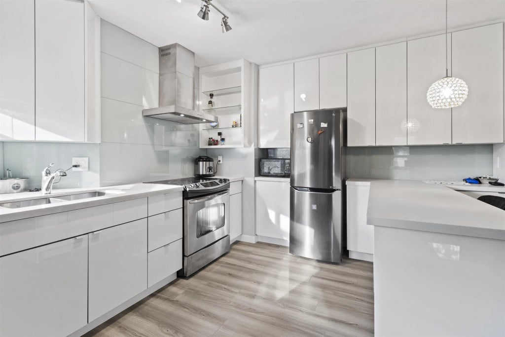 BEST PRICED one bed home in East Van! Here’s your chance to own a fully renovated 1 bedroom unit in the heart of East Vancouver With IN-SUITE LAUNDRY! This stylish home features quartz countertops, custom cabinetry, wide-plank flooring, LED lighting, a designer backsplash, sleek stainless steel appliances, an elevated sleeping area, and more! Enjoy the conveniences of being located on Victoria Drive, just steps from tons of shops, restaurants, schools, parks and public transit. This home is above ground and faces the quiet side of the building, offering peaceful, unobstructed PARK VIEWS! Building in great shape, 1 parking included, come see this incredible reno for yourself. Whether you are looking to buy your first place, downsize or invest do not miss out!