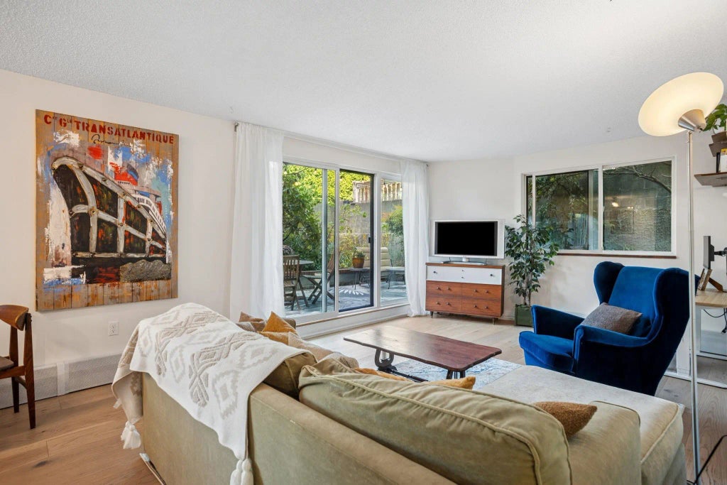 GROUND FLOOR 1 BED, 1 BATH and FLEX, “GEM” IN HASTINGS-SUNRISE YOU DON’T WANT TO MISS! Bright, inviting & renovated 687 sqft home boasting a spacious living area, efficient kitchen layout and good size bedroom. Showstopper patio coming in at just under 300 sqft. makes it a perfect place to enjoy your morning coffee or entertain guests all year round. 1 storage, 1 parking & shared laundry. Perfect for first-time buyers, downsizers, or investors, this home combines functionality w/ a fantastic location. Nestled in the vibrant Hastings-Sunrise community w/ easy access to cafes, restaurants, groceries & recreation. Don’t miss this opportunity to own in one on Vancouver's best neighbourhoods with a proactive strata and a well maintained building! EASY TO SHOW