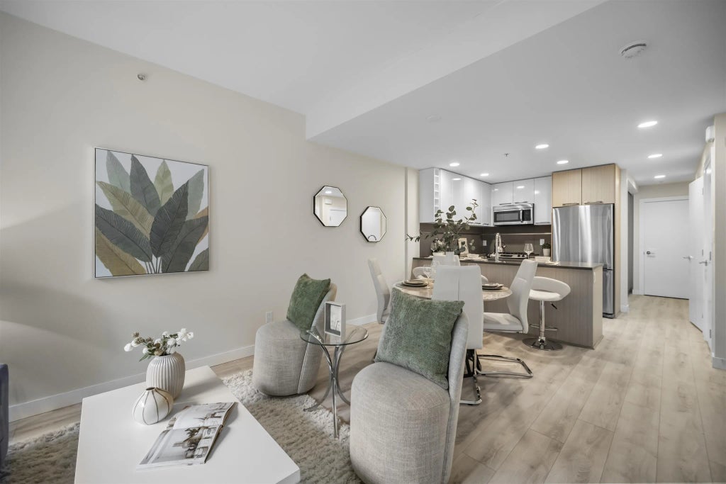 Welcome to the Lift!! Centrally located in SFU, this East facing suite offers convenient living steps from University Highlands Elementary School. 1 BEDROOM AND DEN GROUND FLOOR CONDO ON BURNABY MOUNTAIN. Built in 2014, it is within walking distance to Simon Fraser University, shops and restaurants. Den can be used as second bedroom or large study/office area. Kitchen features quartz countertops, stainless steel appliances and gas stove. Spacious ensuite bathroom has soaker bathtub, separate shower and his & her vanities. Built-in cabinets throughout with tons of storage. Bask in the outdoor patio, perfect for summer barbeques and entertaining. Maintenance fee includes radiant floor heating, hot water and gas. Includes 1 parking and 1 storage locker. RENTALS ALLOWED.