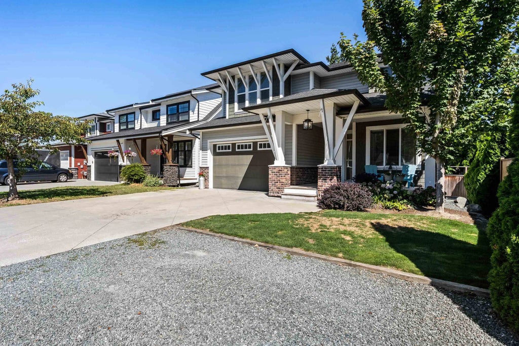 BEAUTIFUL 3600+ sq.ft home w/sep. entry 2 bed bsmt suite in the HEART of Sardis! Boasting SPACIOUS open concept living, this home has everything you need! Bright living room w/shiplap ceiling, stone faced gas f/p, & MASSIVE windows allowing AMPLE natural light throughout. A gourmet kitchen highlighted by a HUGE island w/eating bar, two-tone cabinets, SS appliances, & pantry. Relax OR entertain on the MASSIVE covered patio w/vaulted ceiling, chandelier, & yard w/storage shed. Upstairs you will find the primary suite w/W.I.C & luxurious ensuite feat. dual sinks, sep. soaker tub, heated floors, & GORGEOUS walk-in shower. 3 more large bedrooms up, incl. a 'secret room' - FAB! Not to mention, the bsmt suite is a GREAT mortgage helper! Tons of parking & a PRIME location - book before it's gone!!