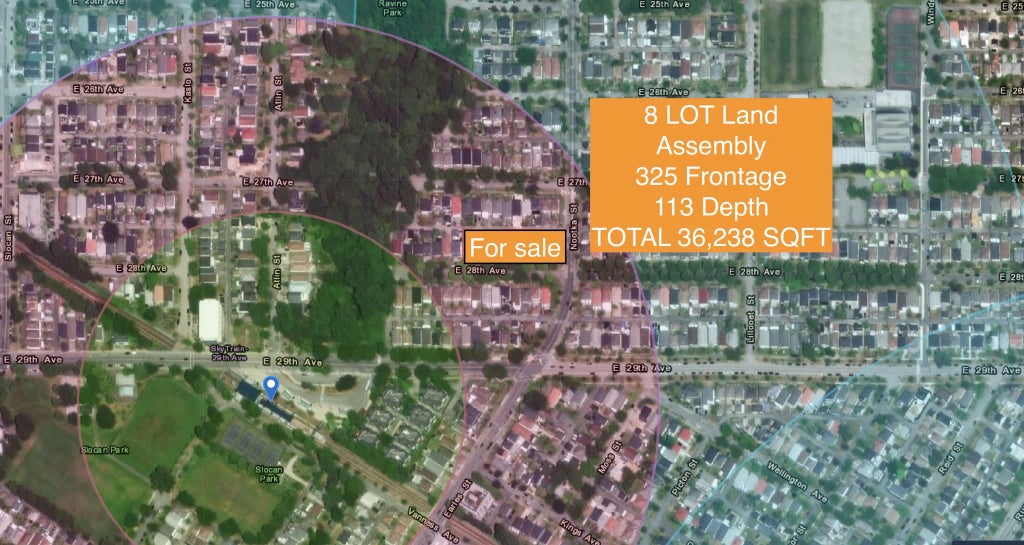 Builder's development DREAM LOTS - 36233 sf area, 8 lots, Land Assembly for Transit Oriented Area (TOA). 12 storey high-rise development, FSR 4.0. 200 to 400 meters of SkyTrain Tier 2 area. Very Quiet Neighbourhood on East 28th Ave. with mountains and water view (after built). Must be sold with 2983, 2965, 2961, 2955, 2953, 2951, 2941, 2937 E. 28th Ave. What are you waiting for?