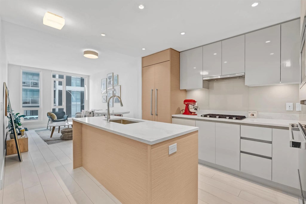Welcome to Avalon 3 by Wesgroup in River District Vancouver! This 2 bed, 2 bath home offers a spacious open layout, high ceilings, and wide-plank laminate flooring throughout. The gourmet kitchen features JennAir stainless steel appliances, quartz countertops, and a large island with breakfast bar seating. The second bedroom is equipped with a custom-built Murphy bed, maximizing space and functionality—perfect for guests or a home office setup. Stay comfortable year-round with energy-efficient heating & cooling. This home comes with one parking and a storage locker. Enjoy resort-style amenities including an outdoor pool, hot tub, gym, and clubhouse. Steps from shops, dining, and scenic waterfront trails—don’t miss this incredible opportunity!