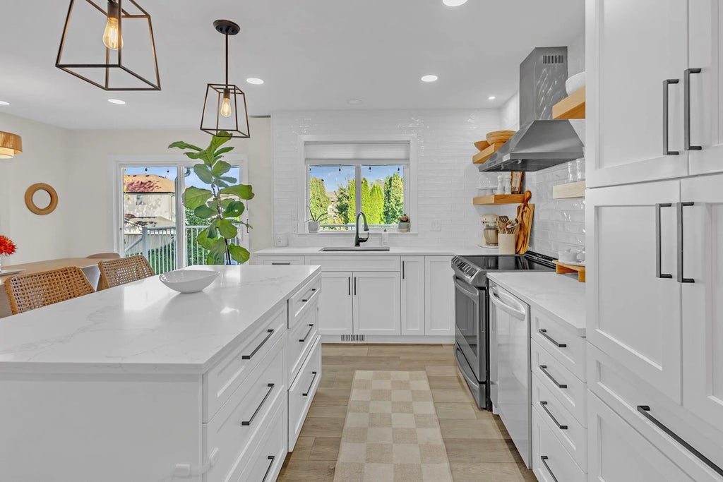 South Sardis LOCATION, and a beautifully renovated 2 storey home with full bsmt. The main show piece of this home is the beautiful kitchen w/lots of cabinets & large island. Modern, functional, and spacious, opening up to d/r & family room w/ gas f/p. Covered deck overlooking large backyard makes easy BBQ traffic through to the kit. Laundry also on main flr as well as den w/extra tall ceilings. 4 beds on upper floor, incl. primary with WIC & full ensuite. Fully finished bsmt with separate entrance and income potential for long term tenant. Prime location for short term accommodation. Minutes from world class fishing, Cultus Lake, Cheam Leisure Centre, UFV & shopping. Double car garage with extra storage, HWT 2019, furnace & A/C 2023. This is a great package in an excellent neighbourhood.